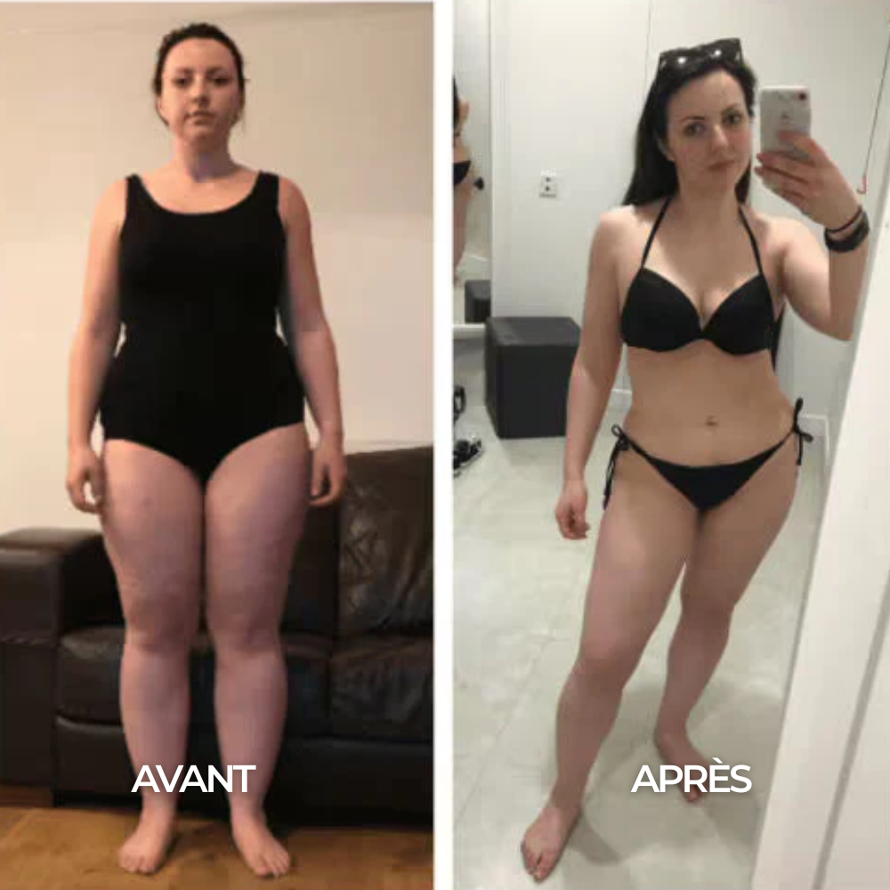 “J’en étais au point où mes jeans me serraient uniquement aux mollets… ridicule mais vrai. On se sent boudinée, pas à l’aise, on passe la journée à vouloir rentrer chez soi pour enlever son pantalon. Après ce produit, j’ai l’impression que ma peau n’est plus ‘tendue’. Mes vêtements tombent mieux. Je me sens enfin à l’aise dans mon corps.”