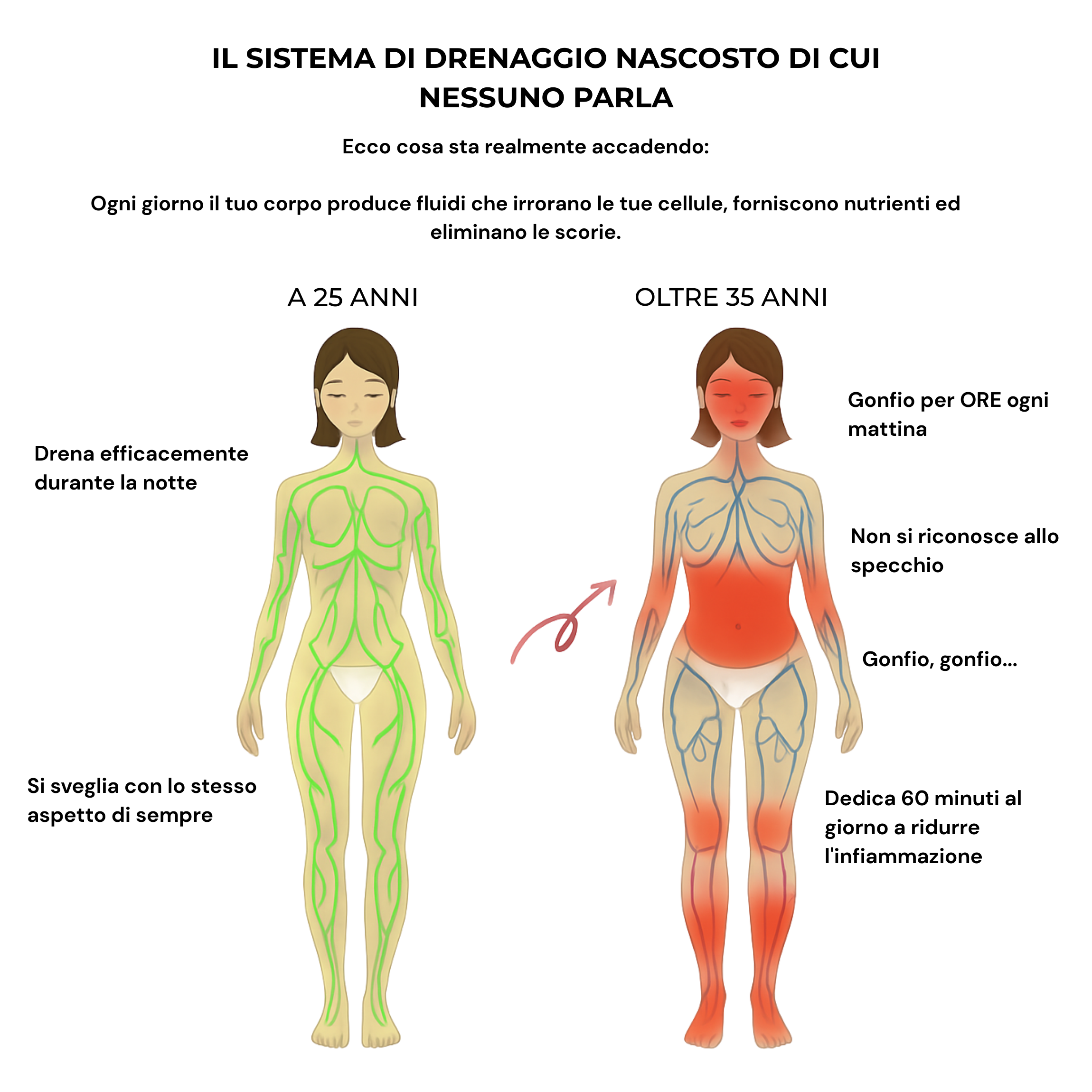 (Non si parla di perdita di grasso, ma di un reale sgonfiamento — ciò che il tuo avatar cliente desidera.)