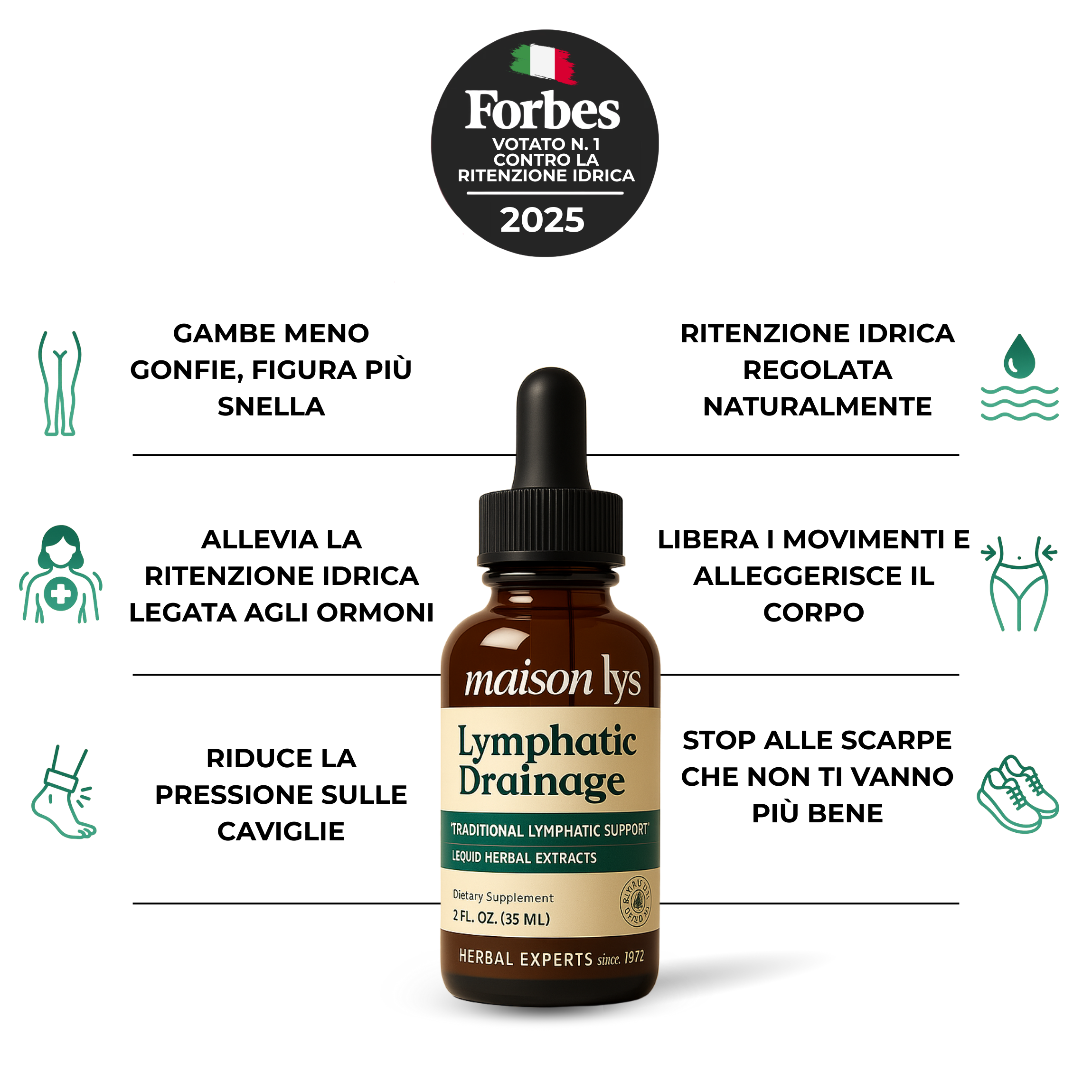 Una formula botanica pura, senza additivi inutili, pensata per le donne soggette a gambe pesanti, gonfie o sensibili alle fluttuazioni ormonali.